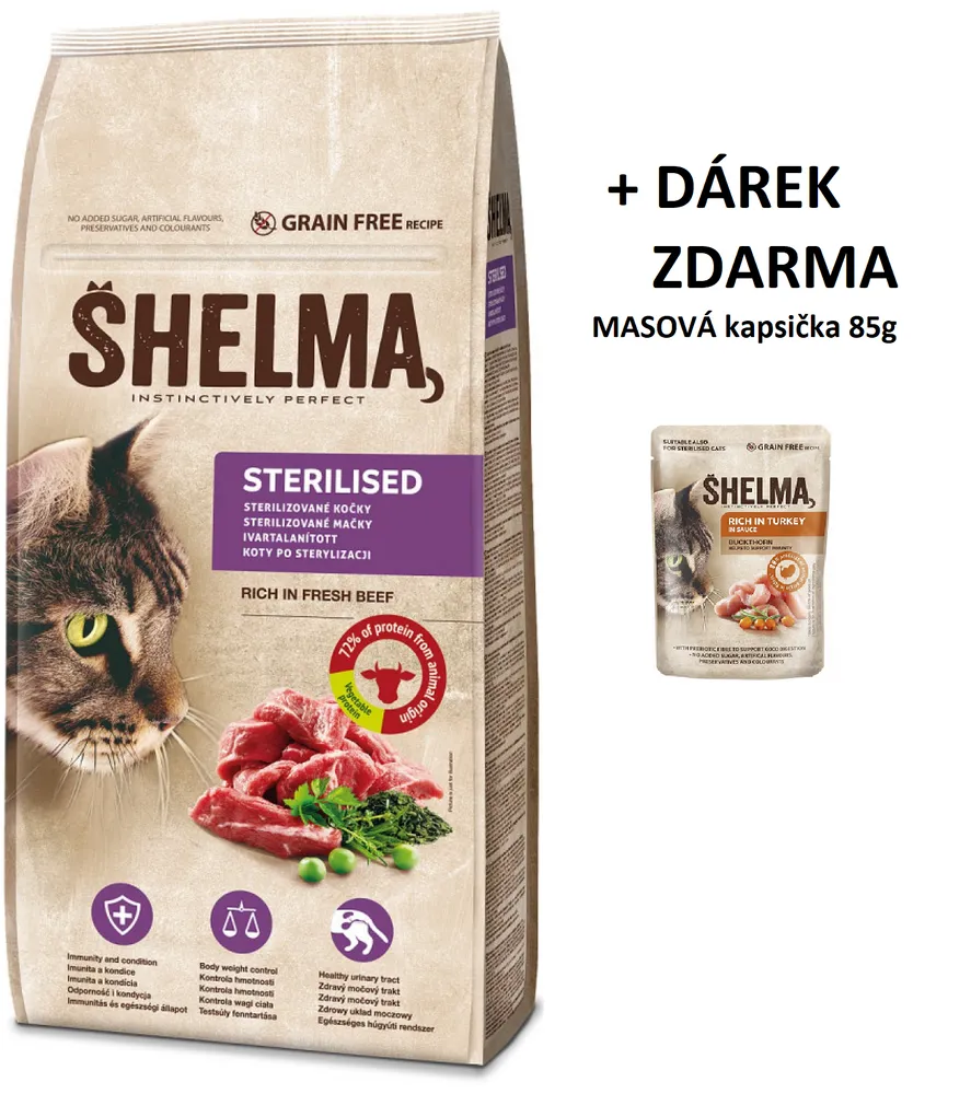 SHELMA Cat Sterilised Beef GF 8 kgSkladem699 Kč/ 8kg624 Kč bez DPH