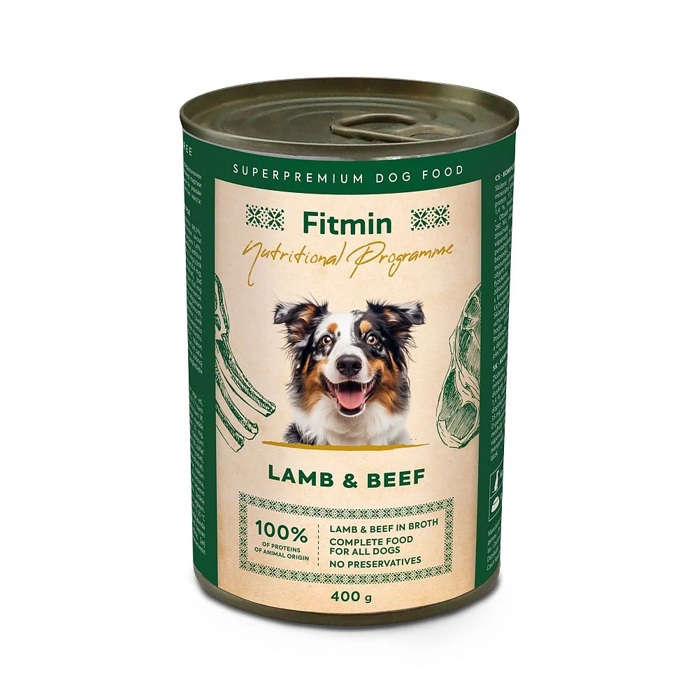 Fitmin Program Konzerva hovězí s jehněčím pro psy 400 gSkladem55 Kč/ ks49 Kč bez DPH