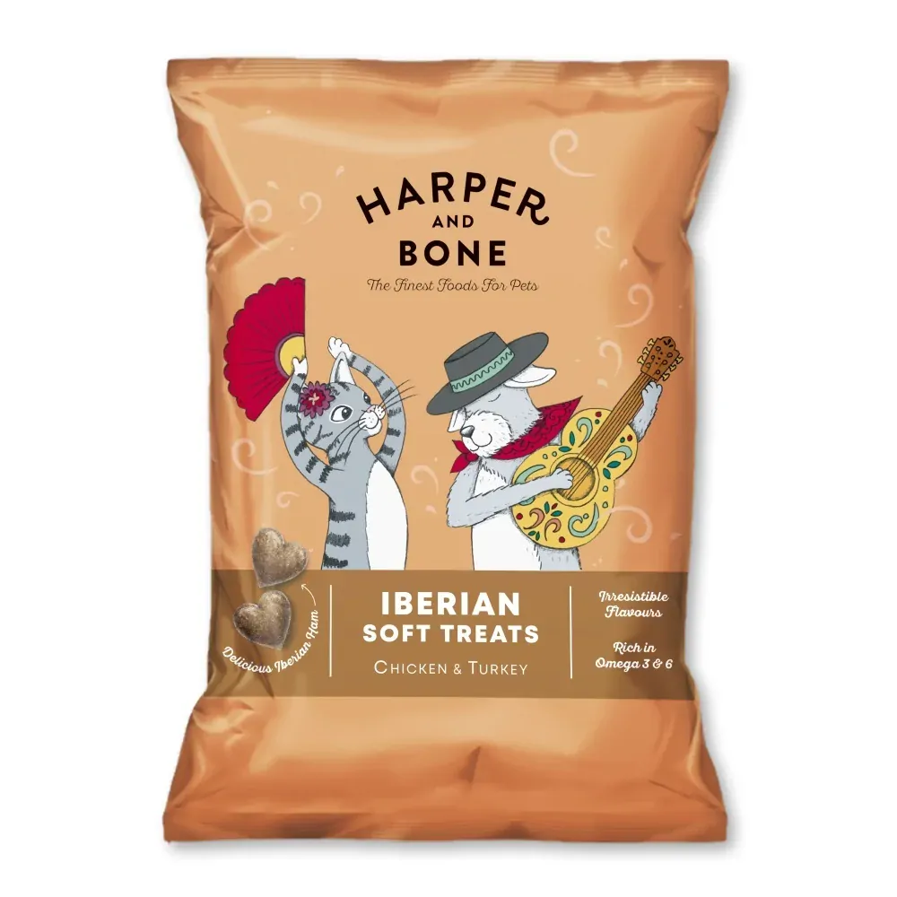 Harper and Bone Cat & Dog iberské měkké pamlsky kuře a krůta 90 g