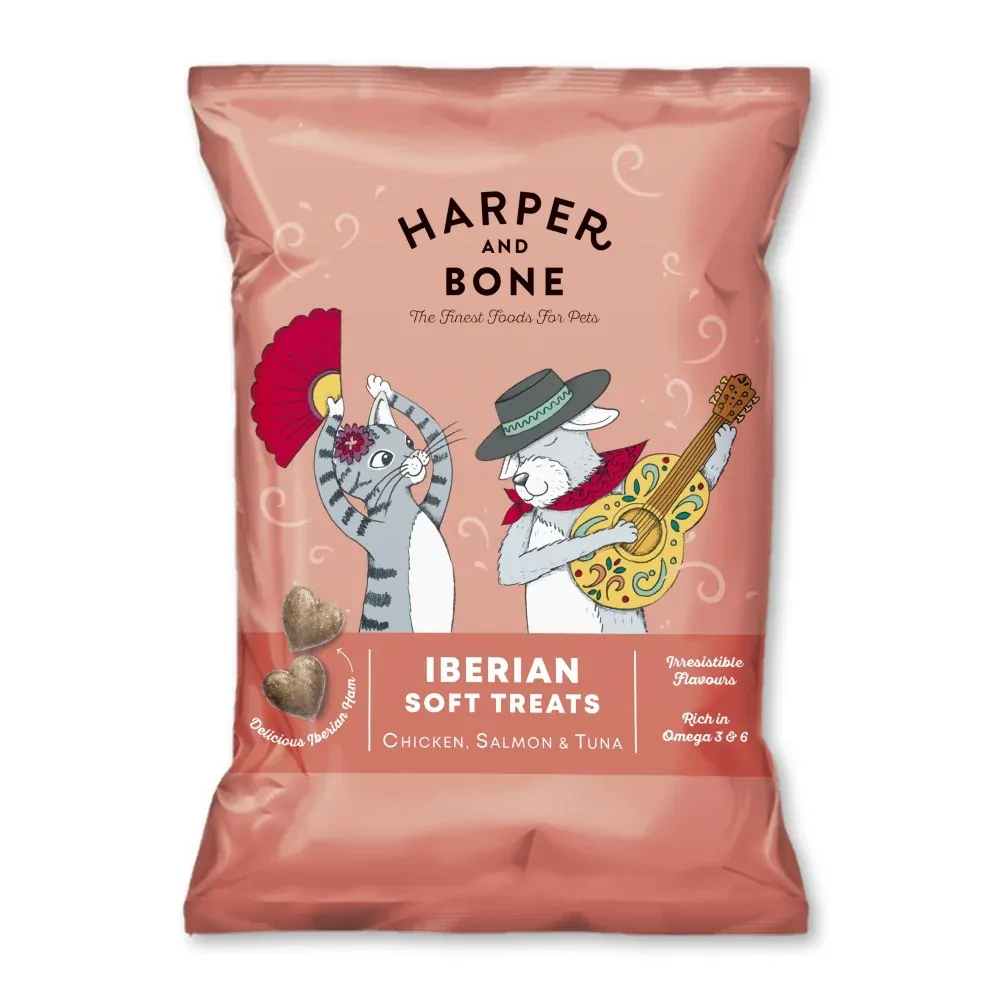 Harper and Bone Cat & Dog iberské měkké pamlsky kuře, losos a tuňák 90 g
